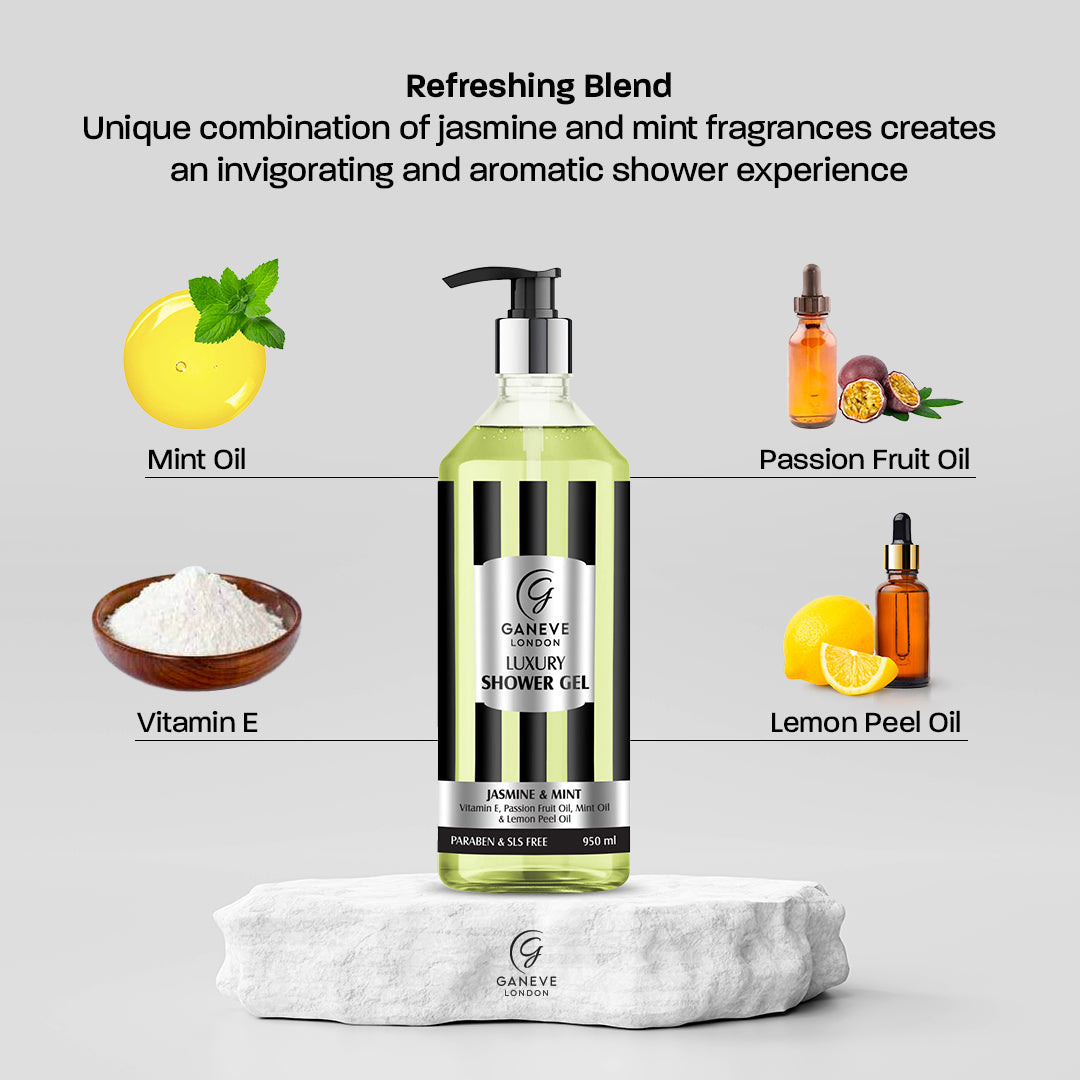 Ganeve London Jasmine & Mint Luxury Shower Gel - 950 Ml Pack Of 1